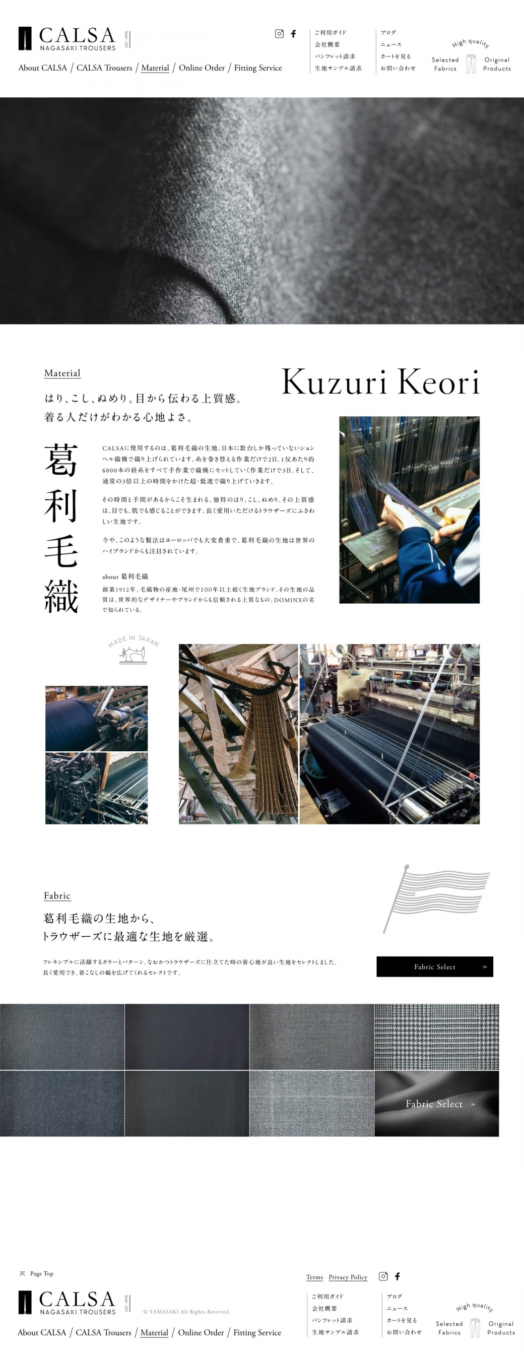 長崎のトラウザーズブランド、CALSAのウェブサイトを担当しました。