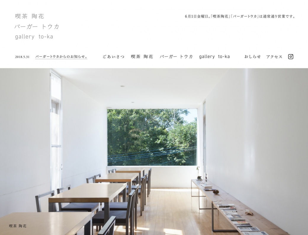 福岡県糟屋郡篠栗町にある喫茶 陶花・バーガー トウカ・gallery to-ka のウェブサイトを担当しました。