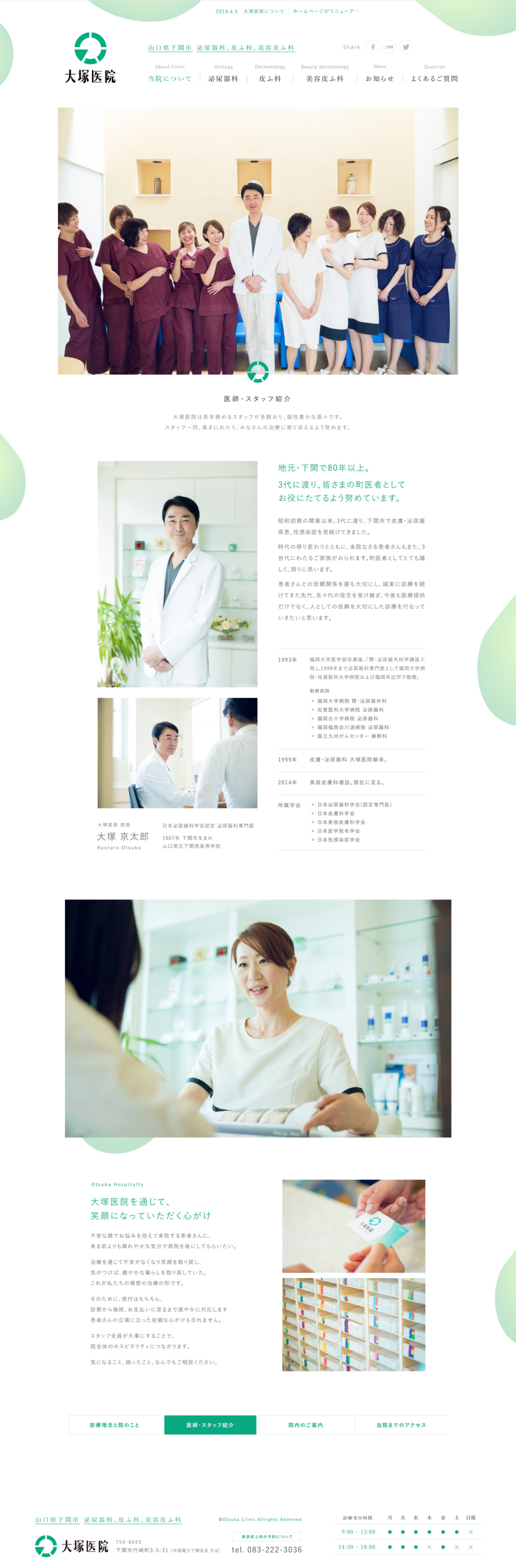 下関の皮膚科クリニック、大塚医院。ウェブサイトを軸にした展開を担当させていただきました。ウェブサイト全般の制作はy2、ロゴの刷新・各院内ツールについてはOefulab平野さんにご相談お願いしました。