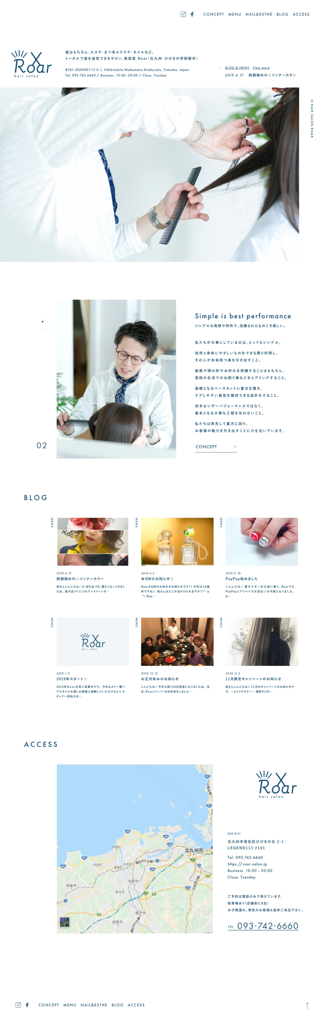 hair salon Roar Works 2019.04.24 北九州市若松にある美容室roar。ウェブサイトと撮影、名刺・ポイントカードなどを担当させていただきました。https://roar-salon.jp