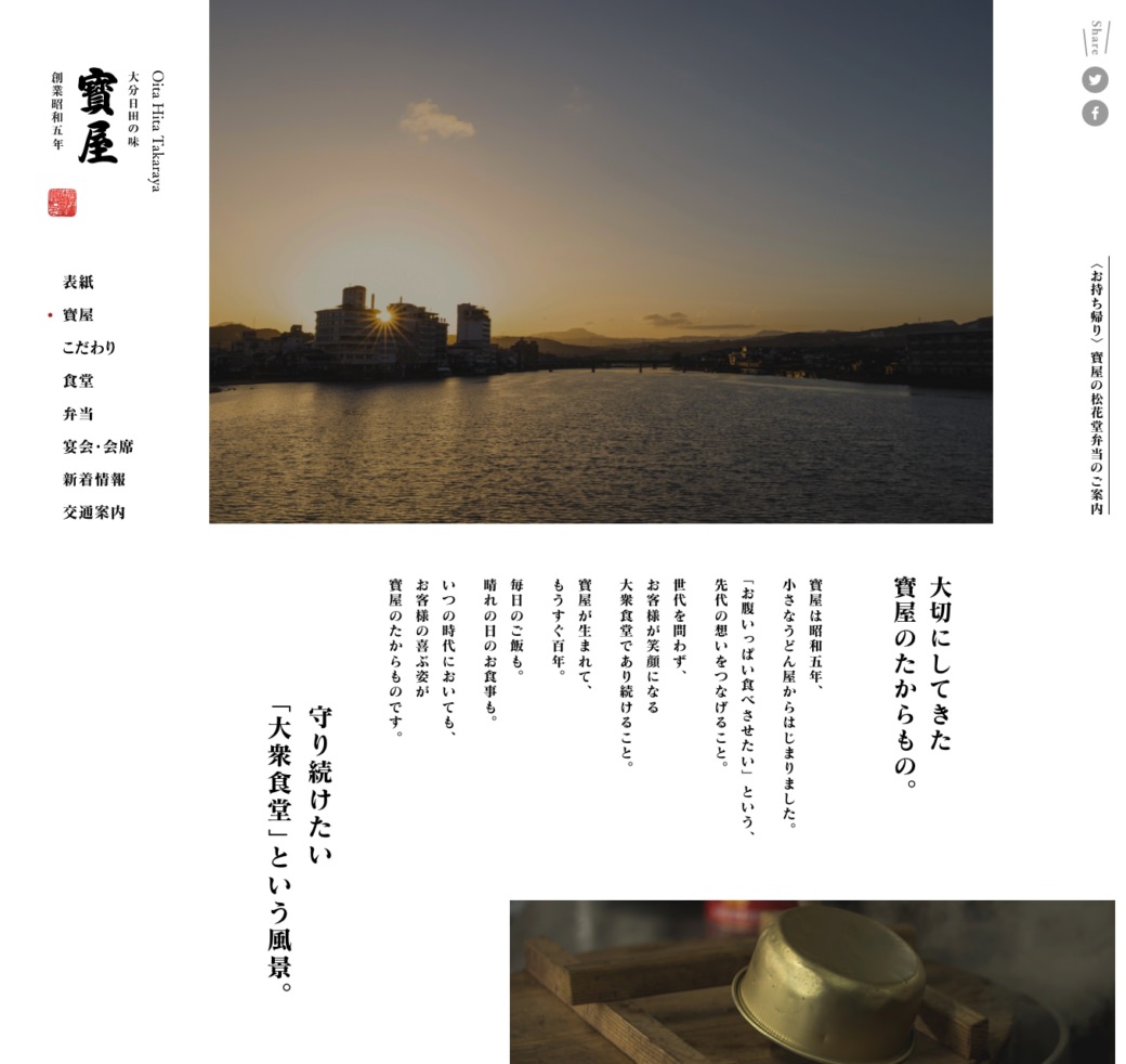 大分のJR日田駅前で約100年ご飯を提供しつづけてきた寳屋さんのウェブサイトをリニューアルしました。