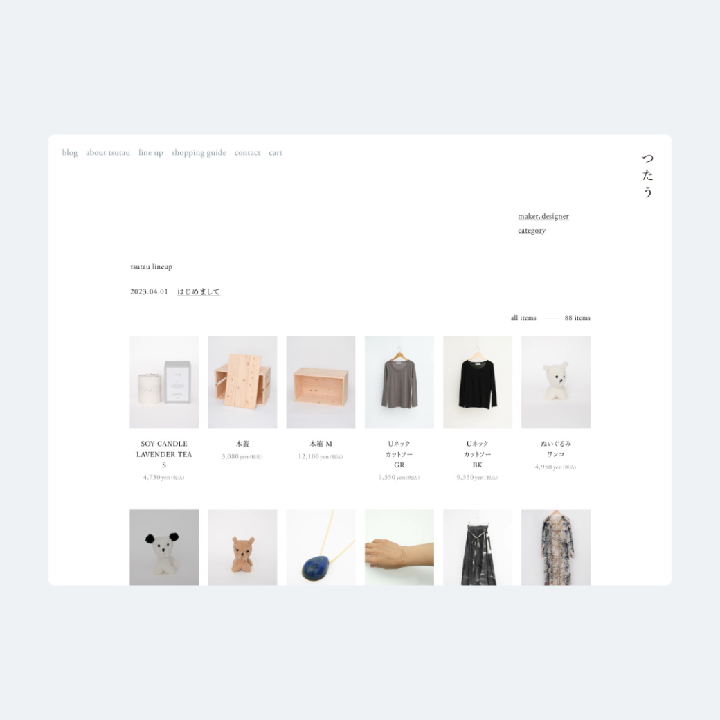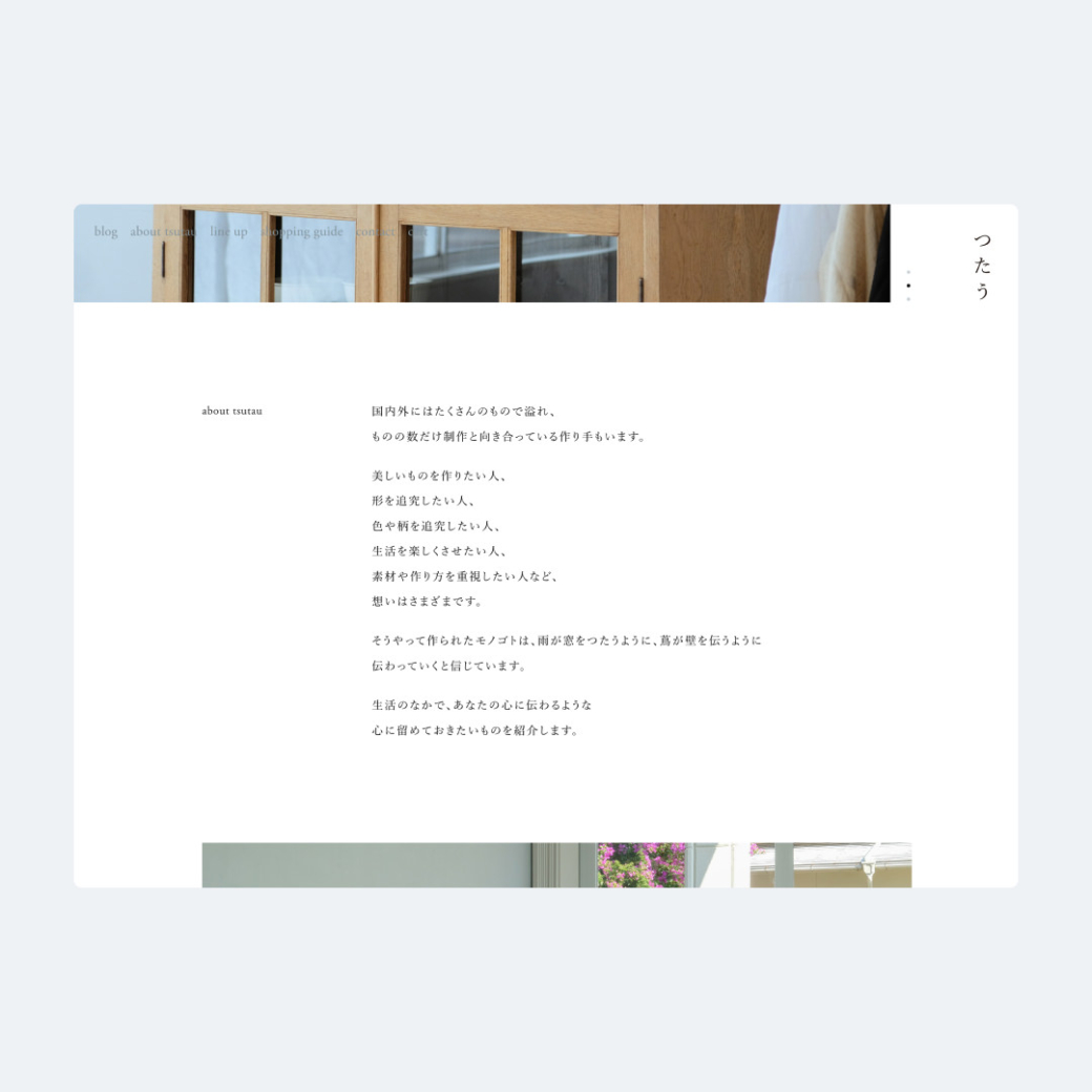 宮崎でギャラリーを営む「つたう」さんのウェブサイトを担当しました。