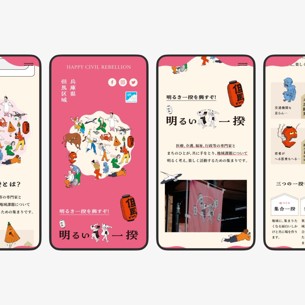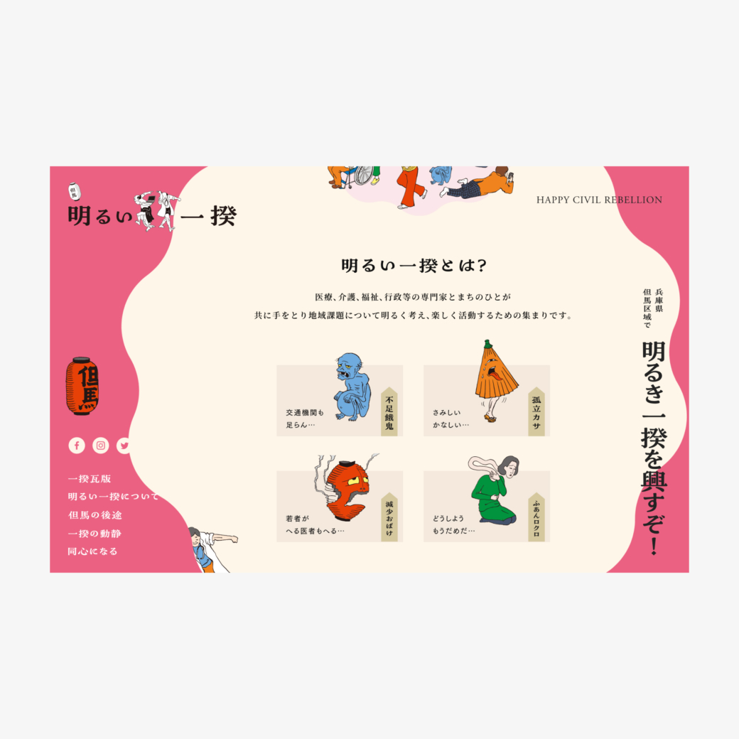 医療・介護・福祉・行政の専門家と地域の人々が手を取り合い、地域課題を明るく考え、楽しく行動するためのプロジェクト「明るい一揆」。そのウェブサイトを担当しました。